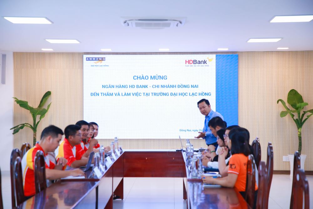 On September 26 morning, 2023, representatives of LHU including Mr. Nguyen Vu Quynh - Vice Rector; Mr. Nguyen Van Trung - Director of Center of Admissions and Public Relations, Ms. Le Thi Thu Ha - Deputy Head of Office of Financial Affairs; Mr. Nguyen Hai Quan - Head of Division of Corporate Relations and Student Support and faculty leaders welcomed and worked with Mr. Nguyen Tuan Anh - Director of Ho Chi Minh City Development Joint Stock Commercial Bank (HD Bank), Dong Nai branch and his associates.