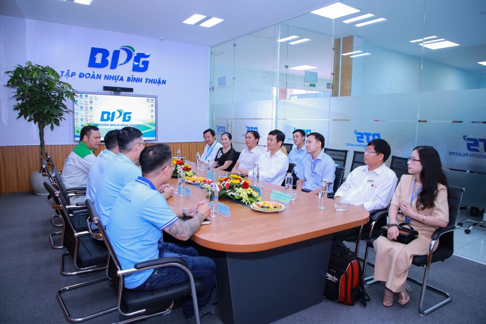Welcoming the LHU delegation were Mr. Hoang Tuan Anh - Deputy General Director of Binh Thuan Plastic Group, Director of Binh Thuan South Plastic; Mr. Tran Ton Khanh - Marketing Director; Mr. Hoang Van Dung - Head of Technical Department; Mr. Nguyen Duy Nhat - Head of Production and their partners.