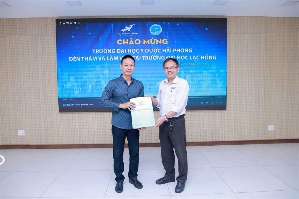 On December 22, 2023, the delegation of Hai Phong University of Medicine and Pharmacy led by Mr. Pham Thanh Nguyen - Director of Center of Educational Testing and Quality Management as Head of the delegation, along with officials and lecturers visited and worked with LHU.