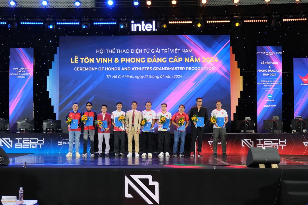 On January 21, 2024, at Rach Mieu Gymnasium in Ho Chi Minh City, the Vietnam E-Sports and Entertainment Association (VIRESA) held a ceremony to honor and present certificates of Recognition “E-sports Grandmaster Athletes” in 2024, phase 2 for for e-sports athletes and coaches who have impressive achievements at big regional and international sports events and tournaments.
