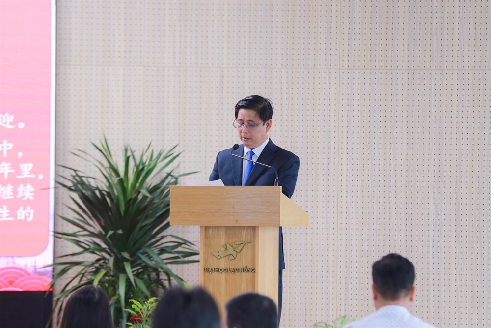 Attending the event, from the Consulate General of the People's Republic of China in Ho Chi Minh City were Mr. Xu Zhou - Deputy Consul General and Mr. Zeng Zi Wei - Consul. From the provincial leaders, there was Ms. Tran Thuy Tien - Vice Chairwoman of the Vietnam - China Friendship Association of Dong Nai Province. From LHU, there were Dr. Lam Thanh Hien - Rector; Assoc. Prof. Dr. Nguyen Vu Quynh - Vice Rector; Dr. Nguyen Huu Nghi - Dean of the Faculty of Oriental Studies; Nguyen Thi Hoang Oanh, M.A - Head of the Office of International Affairs; Phan The Anh, M.A - Program Head of the Chinese Language Department; Luong Van Huy, M.A - Department Head of Chinese Language; representatives of affiliated units, lecturers and students majoring in Chinese Language.