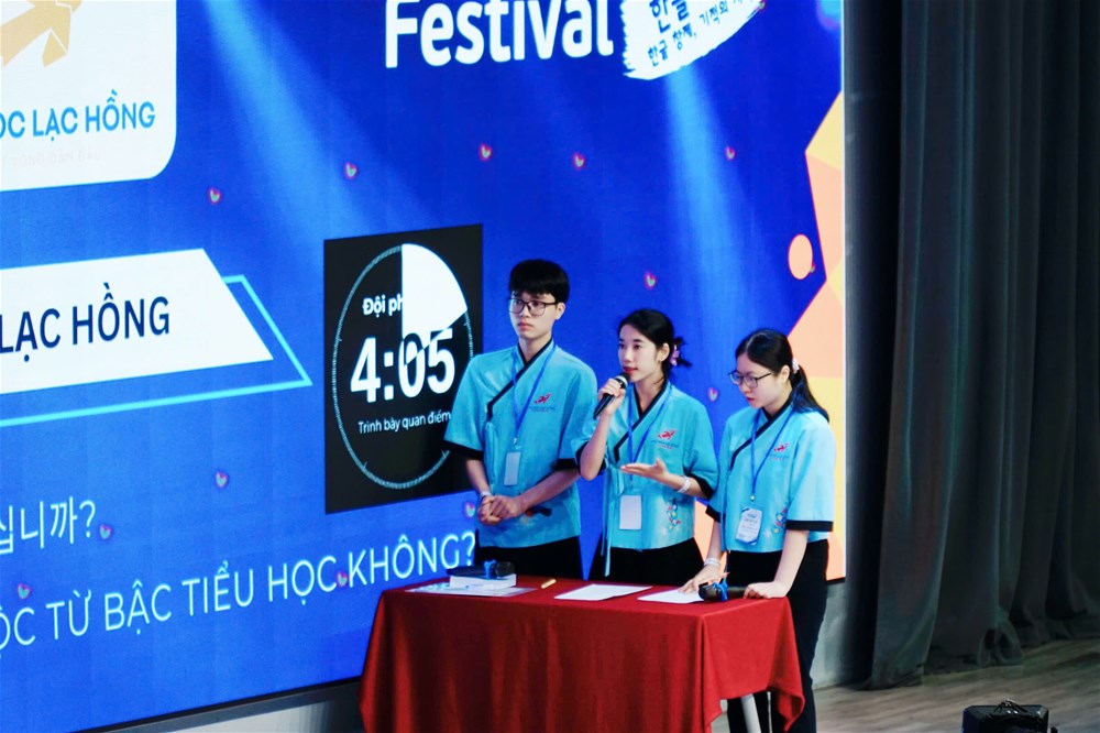 On September 9, 2024, three students majoring in Korean Studies, LHU including Le Van Viet, Duong Huynh Bao Tran and Tran Ngoc Ha Vy participated in the qualifying round of the Korean Debate Contest - Hangeul Festival 2024 held at Van Lang University.