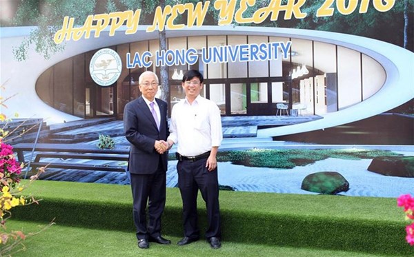 Ngài Shinji Kamei chủ tịch Qũy học bổng Mabuchi và thầy Lâm Thành Hiển Phó Hiệu trưởng Nhà Trường
