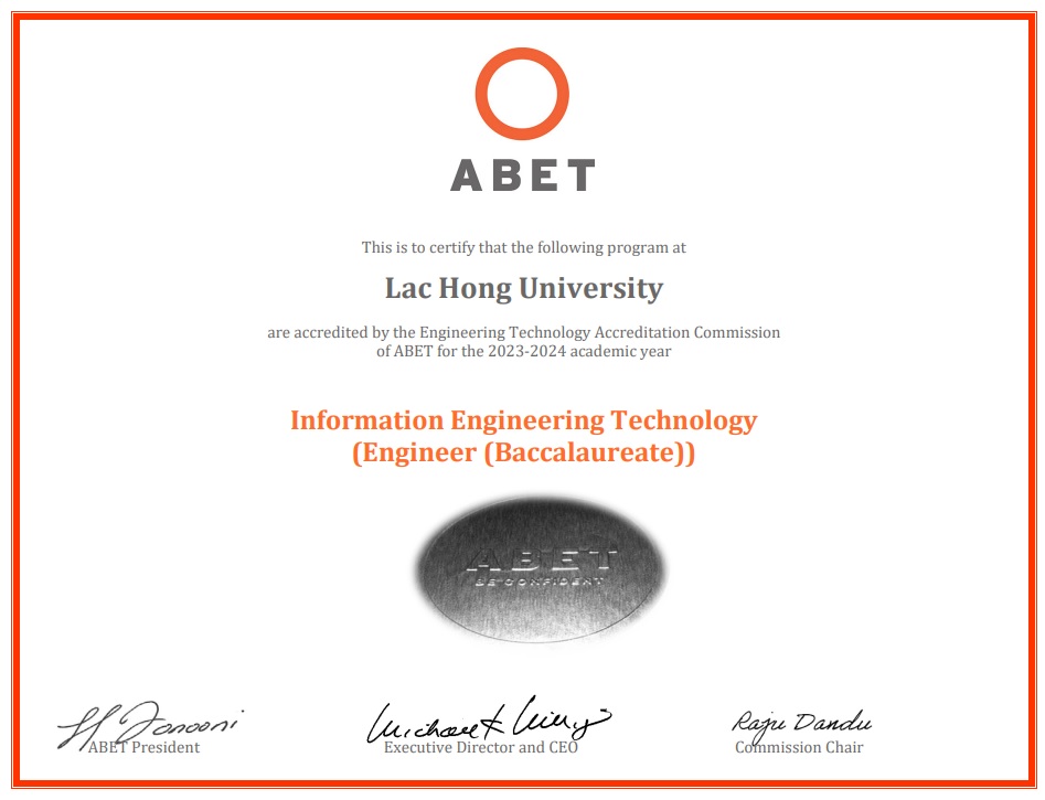 This is a significant achievement after more than 3 years LHU has carried out ABET quality assessment since winning the AUN-QA accreditation in 2019. During this process, the University has received the great support from the BUILD-IT project as well as the dedicated guidance from experts from the United States to help LHU gradually perfect its training programs, innovate evaluation and testing methods, especially outcome standard measurement.