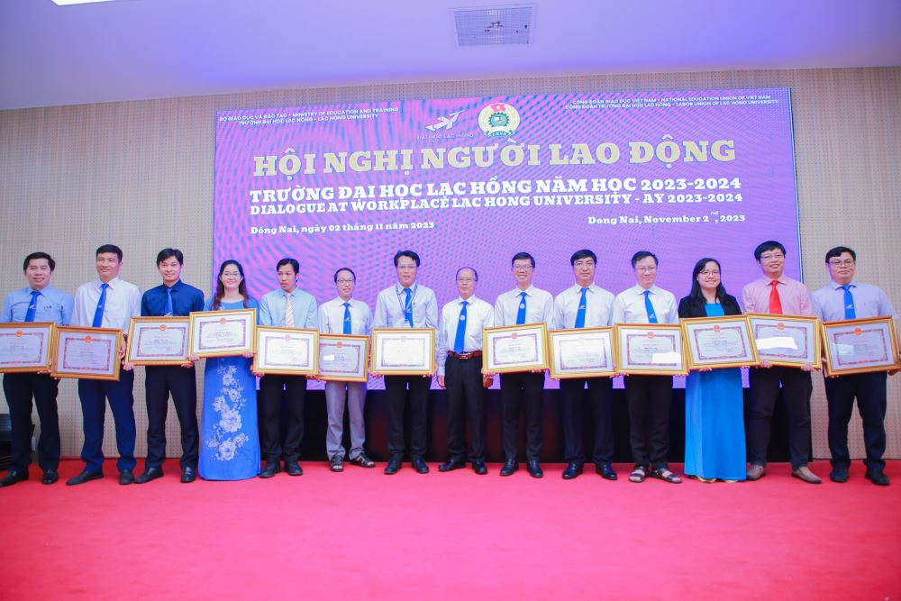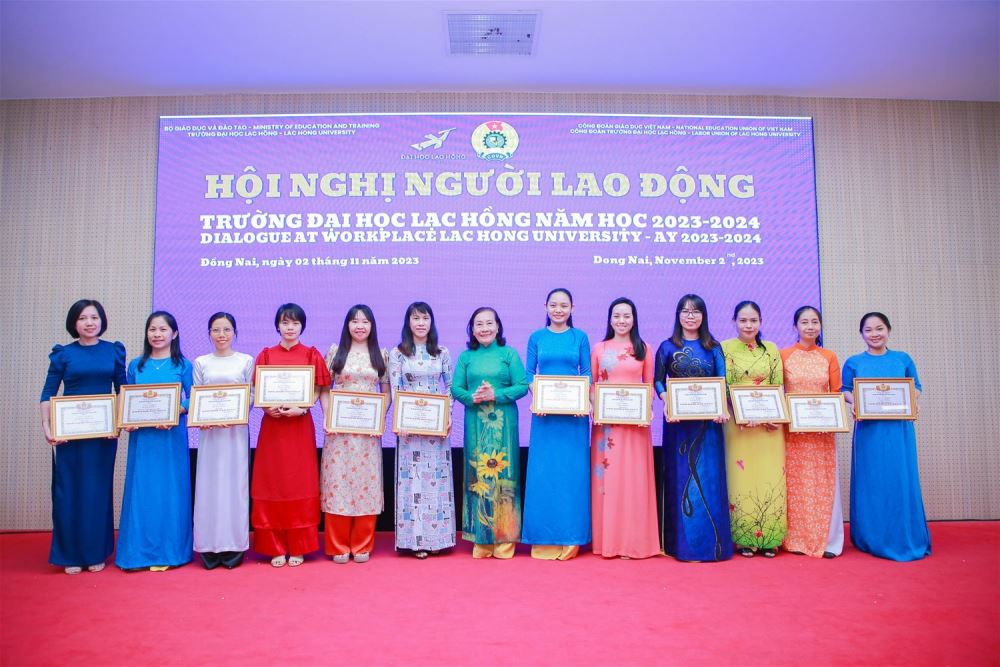 On the occasion, the University honored and awarded certificates of merit to excellent collectives and individuals for their outstanding achievements in emulation movements and activities such as the title "Good at work, Responsible at home", emulation titles of the Provincial People's Committee, LHU Labor Union.