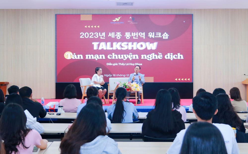 On December 16, 2023, Bien Hoa - LHU King Sejong Academy in collaboration with Mr. Le Huy Khoa - Principal of Kanata Korean School organized a sharing session to talk about the interpretation profession. The event aims to provide students with more perspectives on the Korean translation and interpretation profession, as well as discussions, opportunities, stories that focus on the profession.