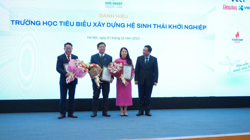 Representing LHU, Dr. Nguyen Van Tan - Dean of Faculty of Administration and International Economics (middle) receiving the title "Outstanding university in building startup ecosystem"