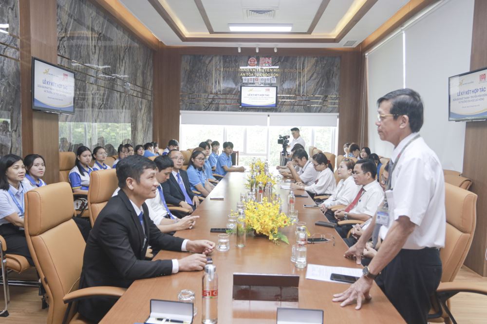 Addressing the ceremony, Assoc. Prof. Dr. Nguyen Vu Quynh - Vice Rector of LHU shared "The MoU will help to strengthen LHU's communications and brand image promotion. This is a great opportunity for students majoring in Multimedia Communications and Public Relations to practice and participate in professional production stages, especially post-production. We expect the students will experience a practical working environment and gain hands-on experience from their seniors. The signing of the MoU will also bring more internship and job opportunities for the students in the future." Mr. Quynh also acted on behalf of the University Management Board to send his deepest thanks to the leaders of Dong Nai Radio and Television for signing the MoU.