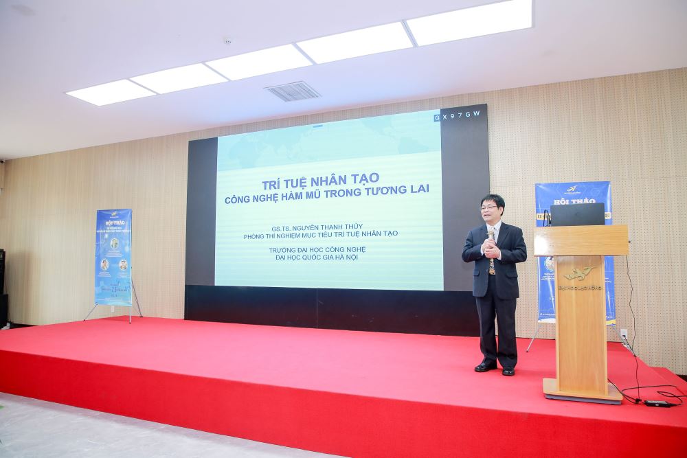 Prof. Dr. Nguyen Thanh Thuy presenting the topic "Artificial Intelligence: Opportunities and Challenges in the Digital Age"