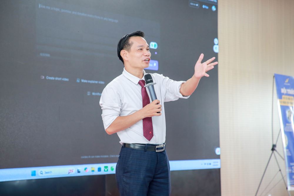 Assoc. Prof. Dr. Tran Van Hung presenting "AI Applications in Education" and "AI Applications in Teaching and Scientific Research"