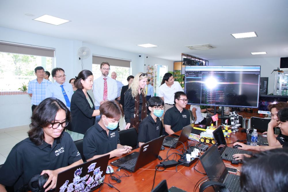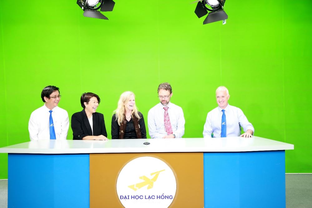Hình ảnh đoàn Đại sứ quán Hoa Kỳ tại Việt Nam và Lãnh đạo trường Đại học Lạc Hồng tham quan phòng Media LHU