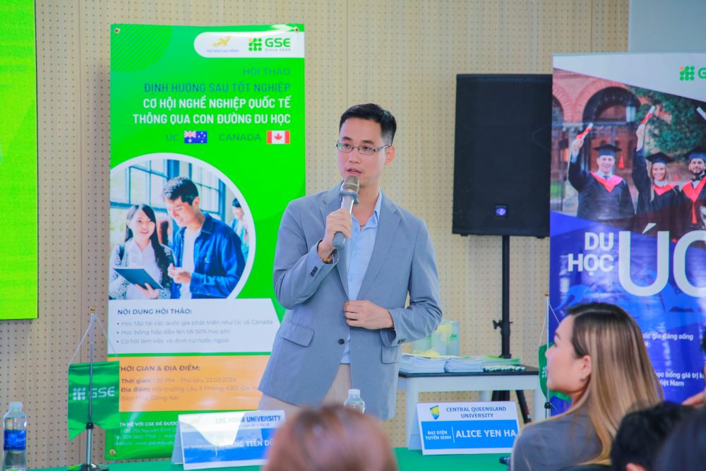 Ngày 22/03/2024 Phòng Quan hệ quốc tế kết hợp cùng Công Ty Dịch Vụ Giáo Dục Toàn Cầu GSE đã tổ chức buổi tư vấn cơ hội nghề nghiệp quốc tế dành cho sinh viên LHU sau tốt nghiệp tại các nước Úc và Canada cho toàn thể các bạn sinh viên các khoa CNTT, Quản trị Kinh doanh, Ngôn ngữ Anh tại Trường Đại học Lạc Hồng.