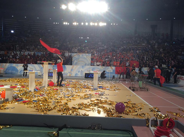 With its all-out efforts, the Robocon Vietnam team defeated Malaysian team in the final match that lasted one minute and twenty seconds.