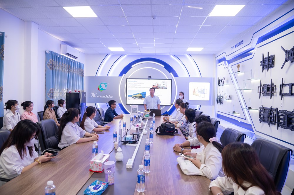 During the company visit, students had the opportunity to listen to the leaders sharing about skills, organizational models of departments at XINADDA METAL CO., LTD (Vietnam), career opportunities, recruitment criteria that the company needs in a candidate, and very sincere sharing from the company's leadership about the working process. In addition, students toured the working area of the company's employees to further understand the corporate culture and work ethic. From there, students gained realistic perspective and prepared themselves well before starting their careers.