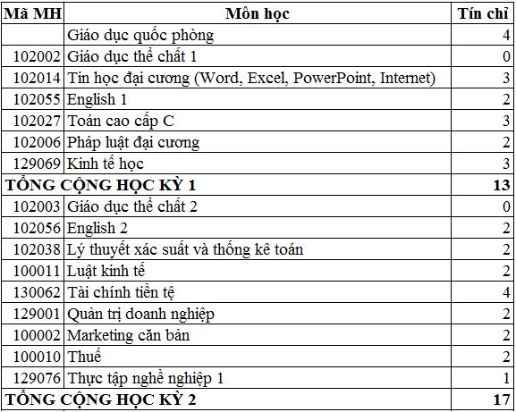 Khoa Tài chính Kế toán  »  Chương trình đào tạo