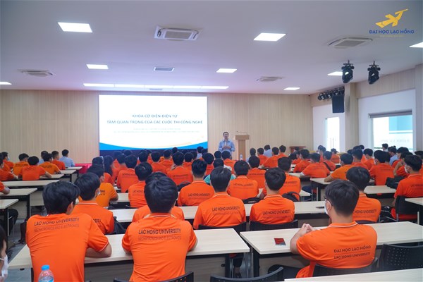 At the event, MSc. Le Hoang Anh – Vice Dean presented the topic "Importance of Technology Competitions at University" and discussed with students competition-related contents.