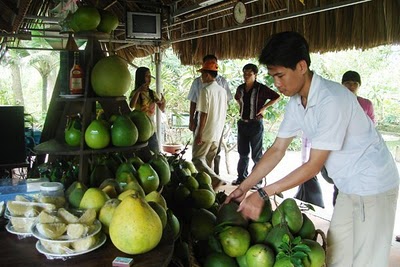 Tan Trieu pomelo has many other species such as Thanh pomelo, Xiem pomelo, guava pomelo, sour pomelo, yellow leaf sweet pomelo, and Duong Num pomelo, He pomelo, Long pomelo, Mrs. Van pomelo and so forth. Each kind of pomelo has its special taste. For example, the Thanh pomelo is juicy and fruitful. Each season, a tree can produce 400- 500 fruits. The Xiem and Long have small size but sweet taste. The most tasty pomelos are Duong la cam and Duong num. The Oi pomelo has a small size but a special feature it can be kept for more than a half of a year but remains sweet.