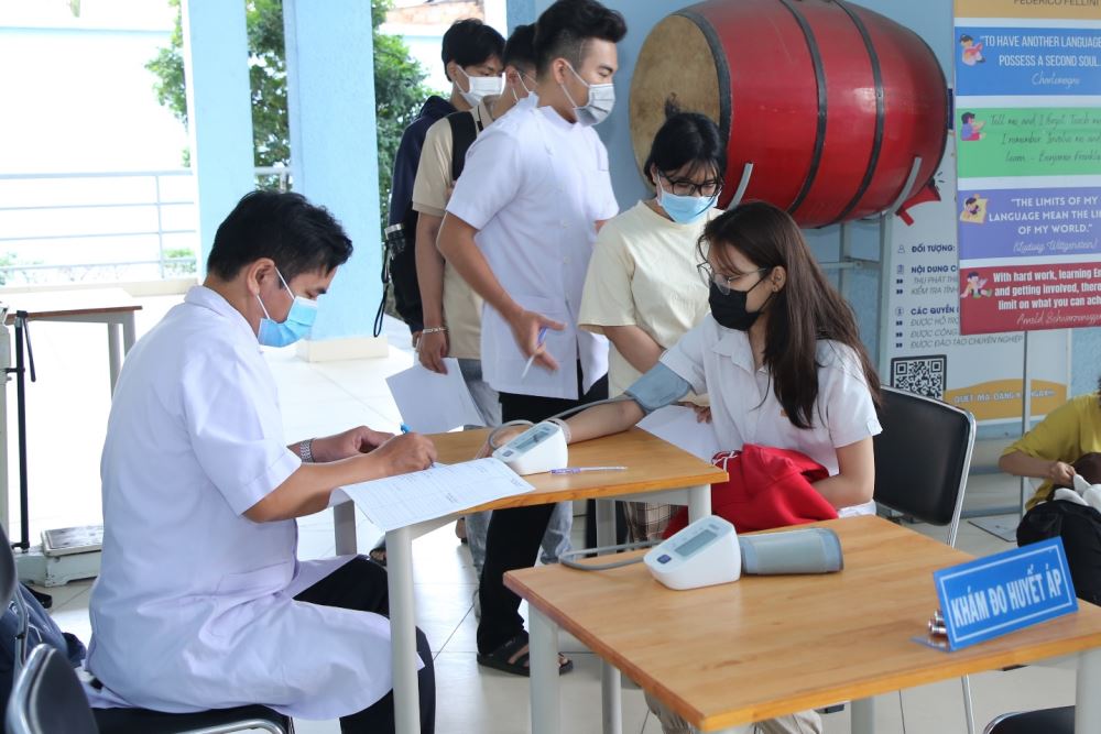 Sinh viên đo huyết áp, chiều cao, cân nặng