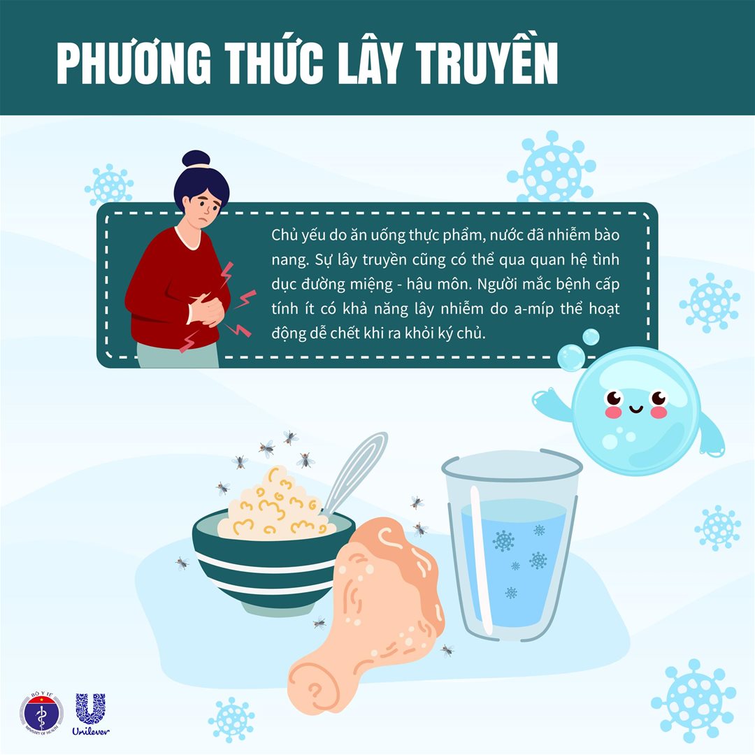 Lưu ý: Người bệnh cấp tính ít có khả năng lây vì thể hoạt động của a-míp dễ chết khi ra ngoài cơ thể.