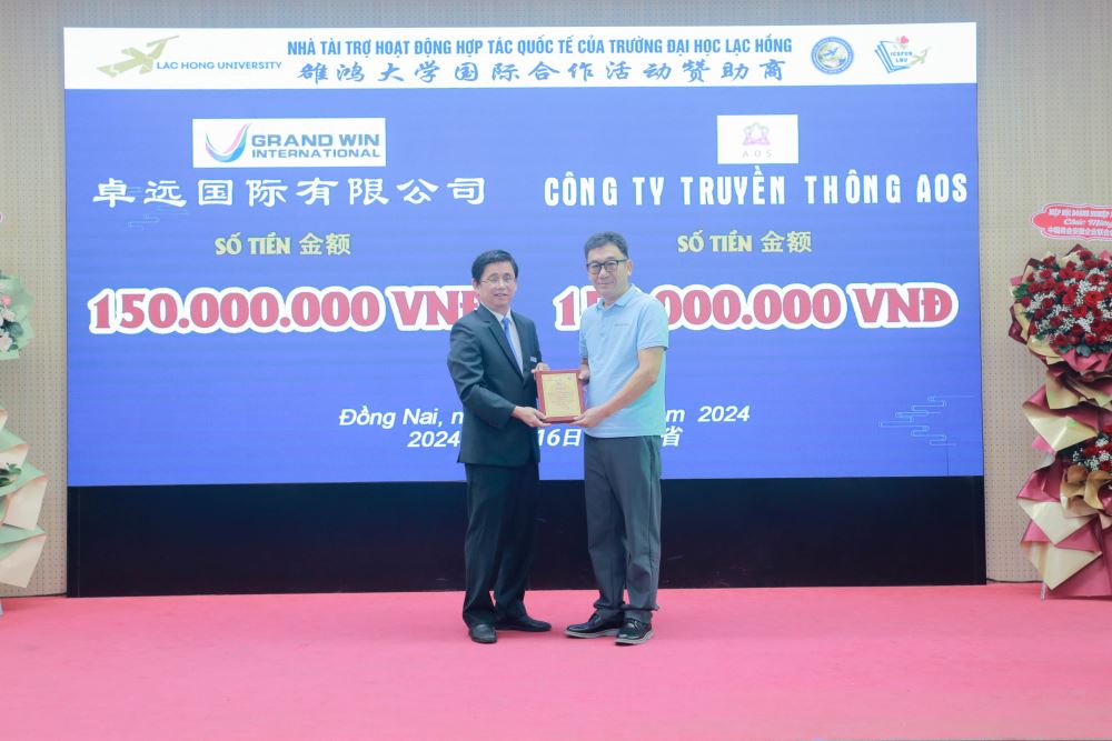 Representing the local government were Mr. Tran Quoc Toan, Deputy Director of Dong Nai Provincial Department of Foreign Affairs and Vice President of the Vietnam-China Friendship Association of Dong Nai Province; and Ms. Tran Thuy Tien, Secretary-General of the Union of Friendship Organizations and Vice President of the Vietnam-China Friendship Association of Dong Nai Province. Attending on behalf of the associations and businesses supporting the LHU scholarship fund were the Chinese Chamber of Commerce in Ho Chi Minh City, the Hunan Chinese Enterprises Association in Ho Chi Minh City, the Hubei Chinese Enterprises Association in Ho Chi Minh City, the Anhui Enterprises Association, and many more. Over 70 businesses and individual donors from Ho Chi Minh City, Binh Duong, Long An, Tay Ninh, and Dong Nai also participated. Representing Lac Hong University were Ms. Do Thi Lan Dai, Chairwoman of the Board of Trustees; Mr. Lam Thanh Hien, President; Mr. Nguyen Vu Quynh, Vice President; and leaders of various departments.