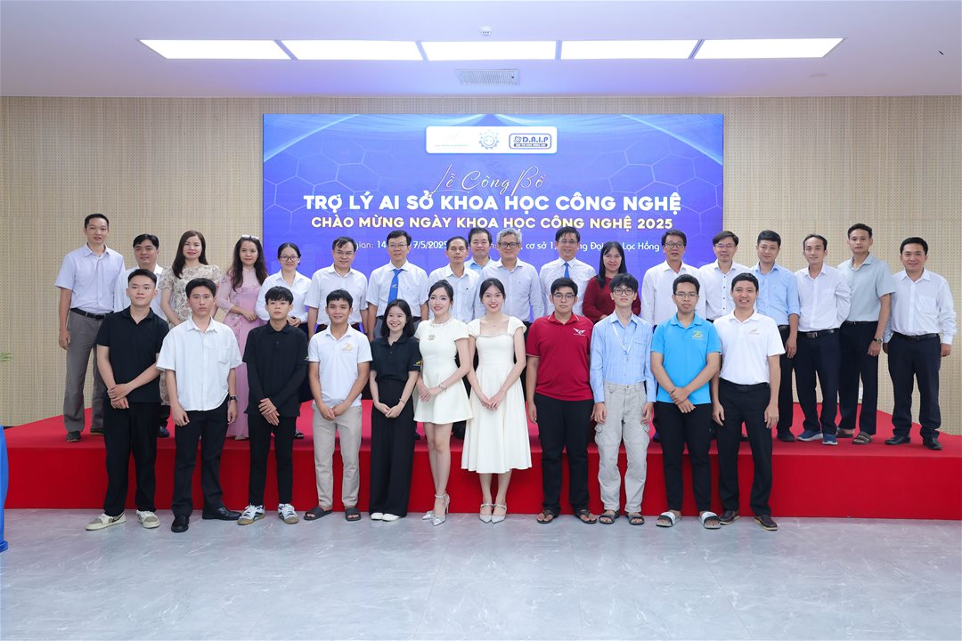 LHU staff and lecturers take souvenir photos with delegates at the DNAI AI Assistant Launch Ceremony.