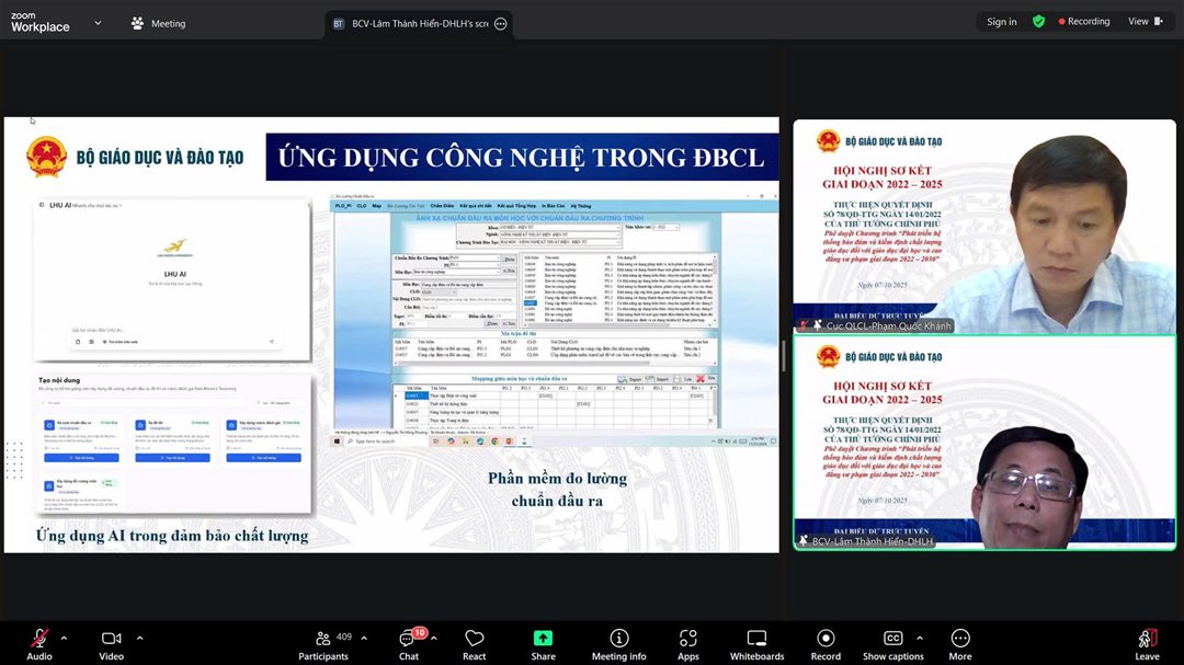 The mid-term review conference on the implementation of Decision No. 78/QĐ-TTg, issued by the Prime Minister approving the “Program on Developing the System for Quality Assurance and Accreditation in Higher Education and Pedagogical Colleges for the 2022–2030 Period”, was held online under the organization of the Department of Quality Management (Ministry of Education and Training), with participation from seven higher education institutions nationwide.