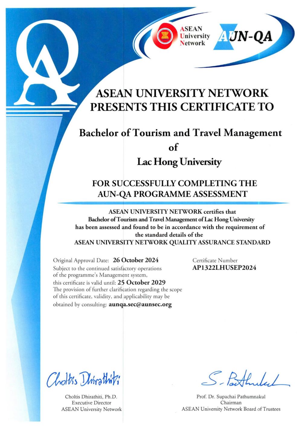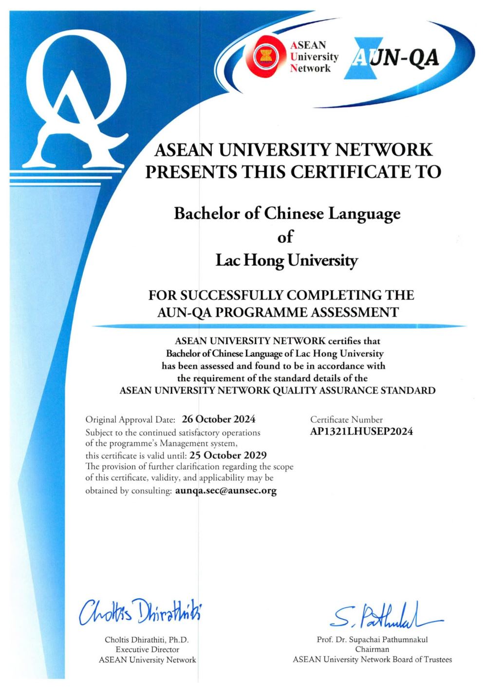 Lac Hong University (LHU) has achieved a significant milestone in its pursuit of educational excellence. Building upon its established commitment to quality, LHU has added four academic programs to its AUN-QA certified list in 2024, bringing the university's total to 14 AUN-QA accredited study programs. This recognition reflects the university’s unwavering commitment to providing high-quality education in line with the ASEAN University Network (AUN) standards. AUN-QA aims to enhance quality assurance in Southeast Asian universities and foster academic collaboration within the region.
