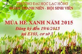 Đăng ký tham gia chiến dịch đến hết ngày 19/6/2015 (Thứ sáu) tại VP. Đoàn - Hội sinh viên trường - phòng E103, cơ sở 3.