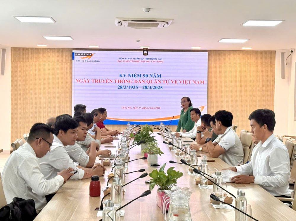 Vào sáng ngày 27/3/2025, Ban CHQS Trường Đại học Lạc Hồng đã tổ chức Lễ kỷ niệm 90 năm Ngày Truyền thống Dân quân tự vệ Việt Nam (28/3/1935 - 28/3/2025). Buổi lễ có sự tham gia của NGƯT. Ts Nguyễn Thị Thu Lan, Phó Bí thư đảng ủy, Phó Hiệu trưởng, Chỉ huy trưởng Ban CHQS trường cùng các đồng chí trong Ban Chỉ huy và chiến sĩ thuộc đơn vị.
