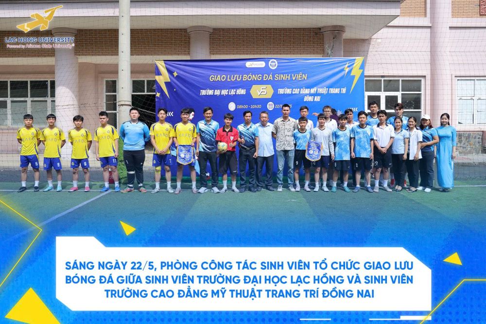 Sáng ngày 22/5, tại Khu GDTC & KTX Trường Cao đẳng Mỹ thuật trang trí Đồng Nai, buổi giao lưu bóng đá giữa sinh viên Trường Đại học Lạc Hồng ở Ký túc xá và sinh viên Trường Cao đẳng Mỹ thuật trang trí Đồng Nai đã diễn ra sôi nổi. Sự kiện nhằm tăng cường gắn kết giữa sinh viên hai trường, đặc biệt là sinh viên ở Ký túc xá.