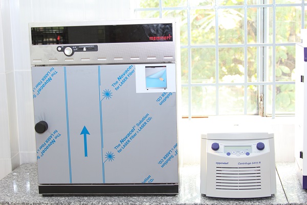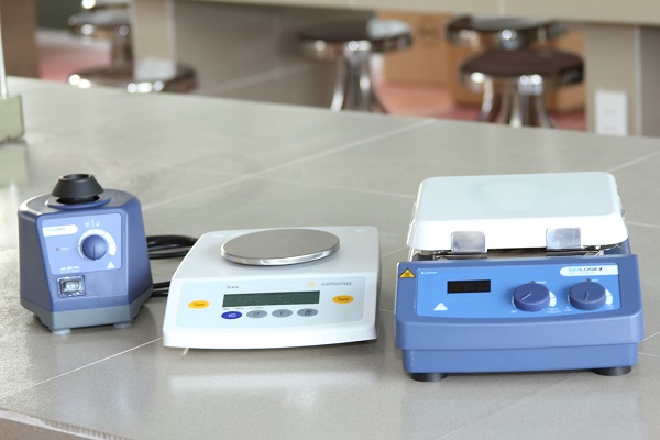 Tủ sấy, máy ly tâm, máy vortex, cân điện tử và máy khuấy từ (từ trái sang)