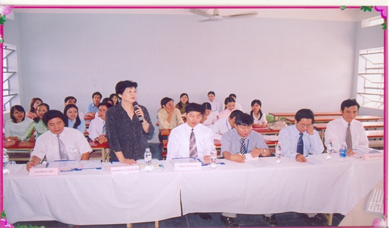 (SV Nguyễn Văn Dũng ngồi hội đồng thẩm định đề tài khoa học của sv người thứ 2 từ phải sang)