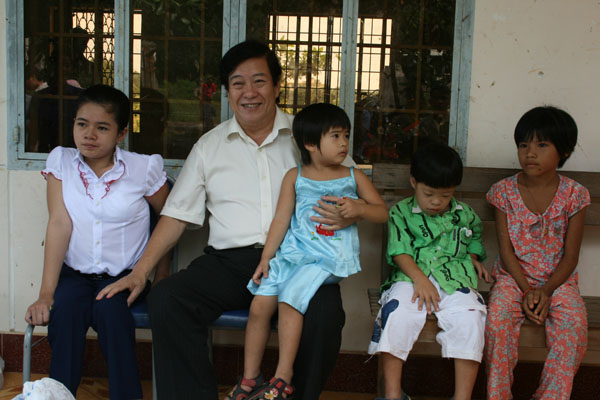 NGƯT. TS Đỗ Hữu Tài tặng quà cho gia đình các bé bị nhiễm chất độc da cam