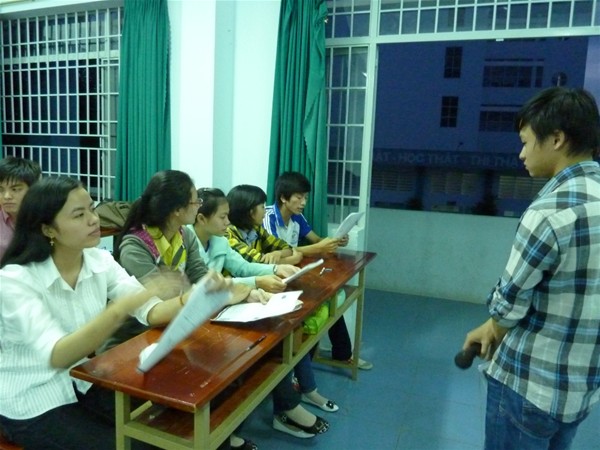 MC Trần Quang Vinh (09DN111) đang giới thiệu về chủ đề của buổi sinh hoạt