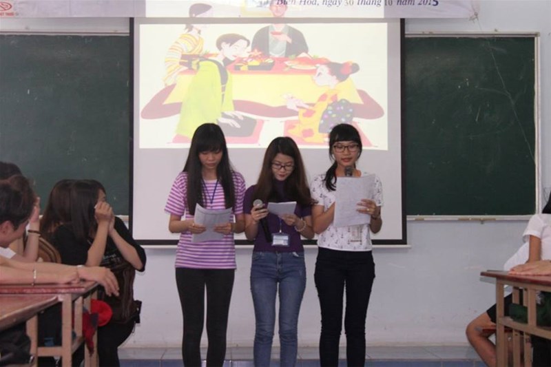 Sau khi các lớp phụ trách trình bày xong, các sinh viên chia theo nhóm và thảo luận theo các câu hỏi mà ban tổ chức đưa ra. Chẳng hạn so sánh phong tục ngày Tết ở Việt Nam và Nhật Bản, các con vật nuôi ở Việt Nam thế nào?....Trong phần thảo luận này sinh viên có cơ hội được giao lưu nói tiếng Nhật với các Thầy Cô người Nhật. Đây chính là cơ hội tốt giúp sinh viên trau dồi khả năng giao tiếp tiếng Nhật.