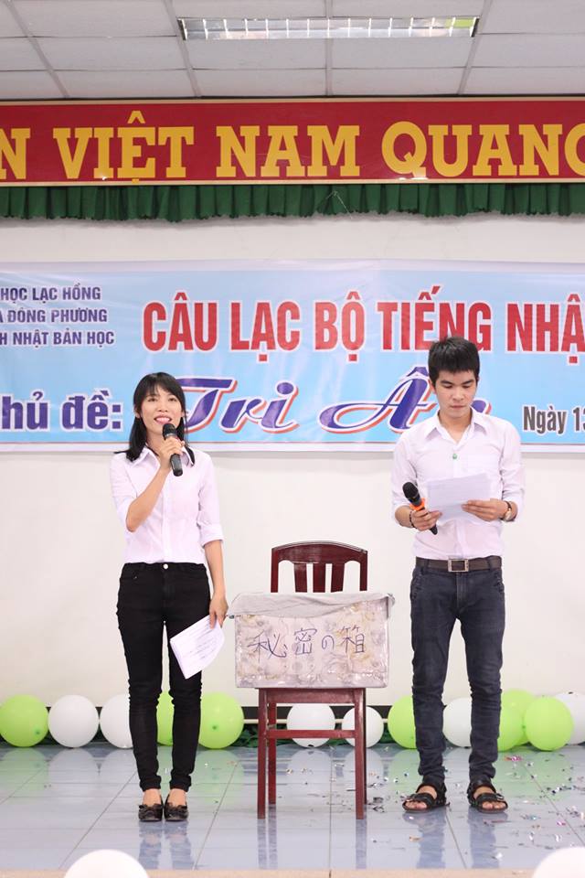 -          Trò chơi “Chiếc hộp bí mật”: Ban tổ chức chọn một sổ bạn đại diện tham gia. Mỗi bạn sẽ cho tay vào chiếc hộp và cảm nhận đồ vật bên trong. Sau đó, người chơi sẽ miêu tả đồ vật cảm nhận được bằng tiếng Nhật để cho khán giả trả lời. Câu trả lời được ban tổ chức xác nhận là đúng sẽ được tặng quà.