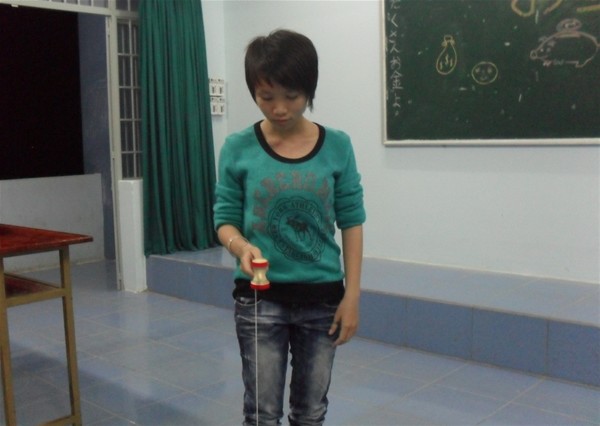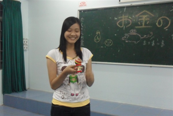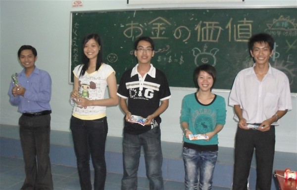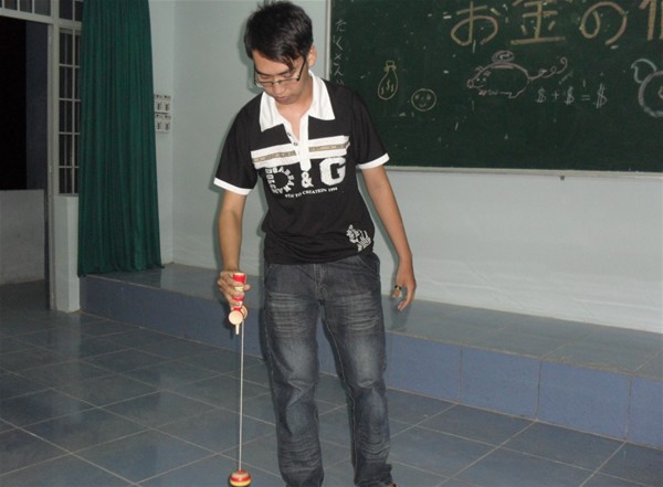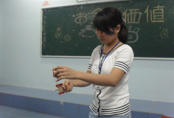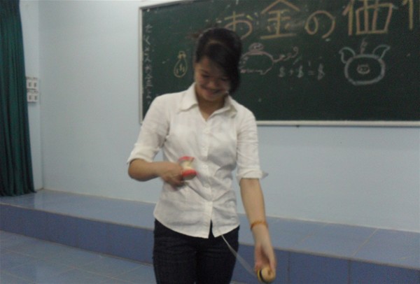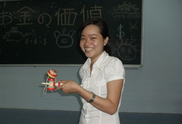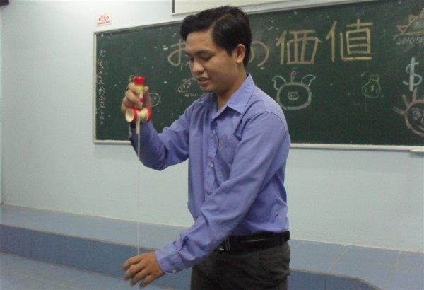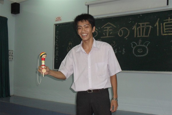Các sinh viên tham gia trò chơi "Kendama" và quà từ Thầy Tobita