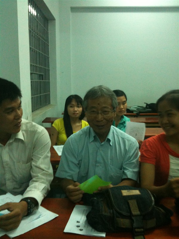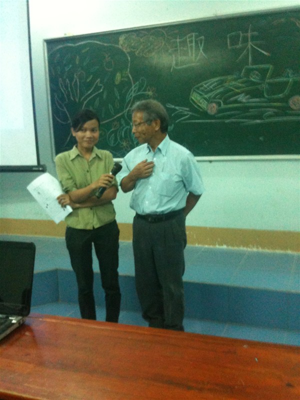 Thầy Tobita đang trả lời câu hỏi từ BTC 飛田先生はクラブからの質問に答えている |