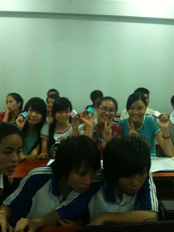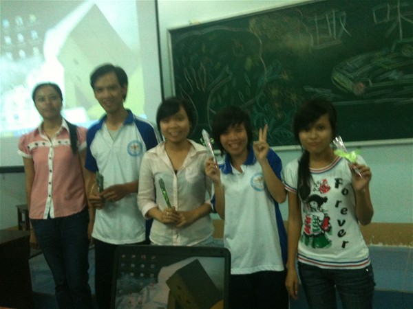 Sinh viên trả lời đúng câu hỏi sau khi xem vở kịch và nhận quà thưởng từ BTC.CLB 演劇に関する質問に答えた学生はプレゼントをもらった |