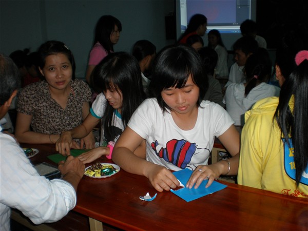 昨日日本クラブはE408教室で2010年10月14日の16時半に行って。Hôm qua ngày 14 tháng 10 năm 2010, vào lúc 16h30, câu lạc bộ tiếng Nhật được tổ chức tại phòng E408. 今回日本クラブは楽しく行っている。Câu lạc bộ tiếng Nhật lần này diễn ra rất sôi nổi. 一年生も参加した。Sinh viên năm nhất cũng tham dự. 日本語が話せないけどう、一年生は一生懸命参加した。Mặc dù chưa nói được tiếng Nhật nhưng các sinh viên năm nhất hưởng ứng rất nhiệt tình. 相談した後、皆さんは面白い映画を見たり、ゲムをしたり、日本語の歌を歌ったりする。Sau khi thảo luận các bạn sinh viên cùng nhau xem đoạn phim hoạt hình vui, cùng nhau chơi trò chơi và hát bài hát tiếng Nhật. Sau đây là một số hình ảnh câu lạc bộ lần này.