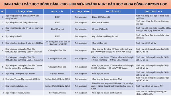 Các loại học bổng dành cho sinh viên khoa Đông phương học