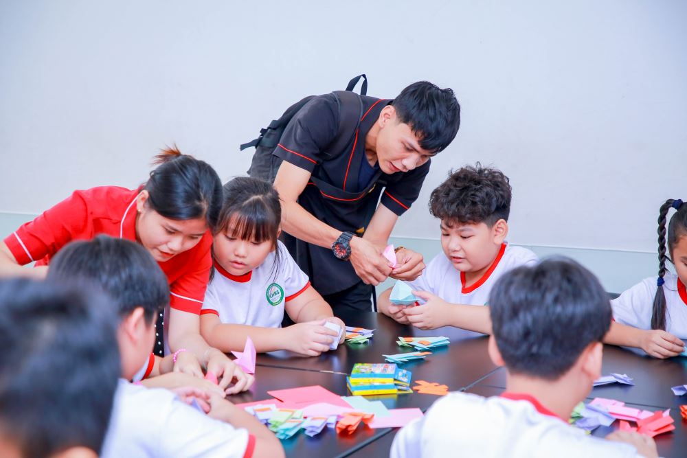 Sinh viên ngành Nhật Bản học hỗ trợ các bạn học sinh gấp giấy