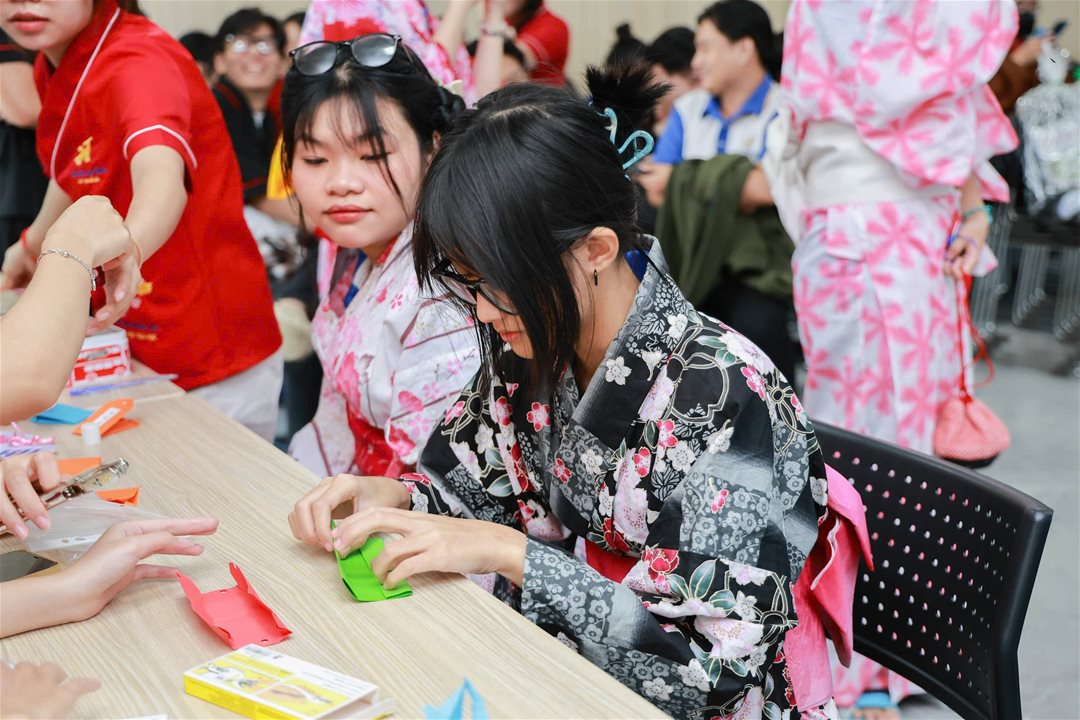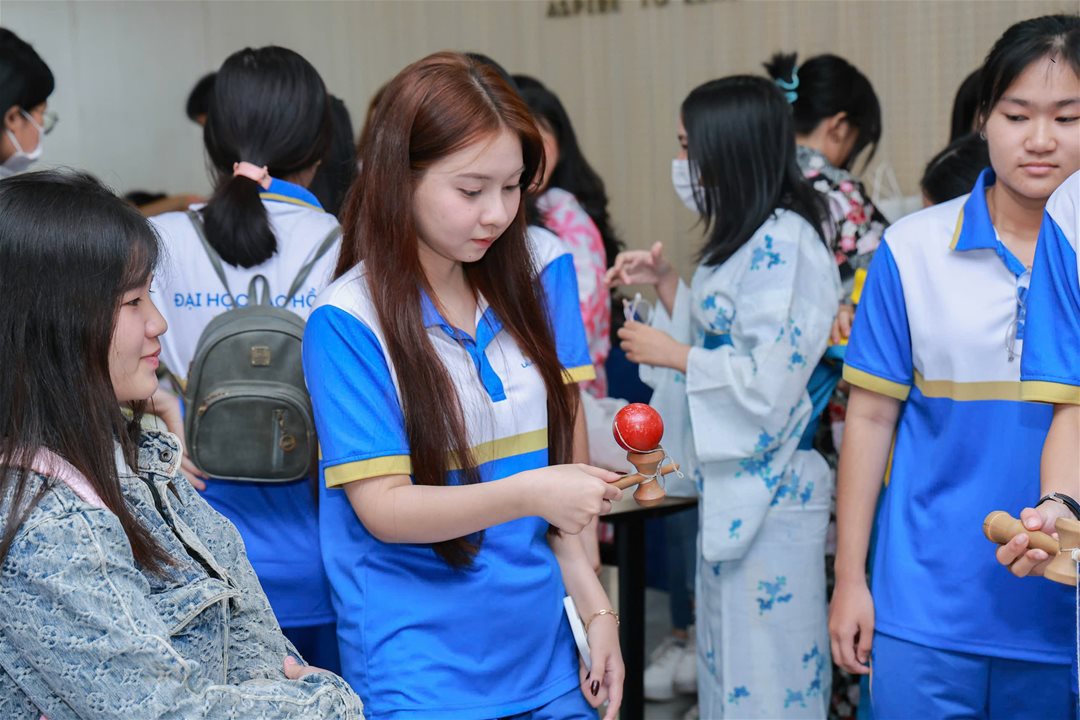 Trong khuôn khổ chương trình, tân sinh viên đã có cơ hội tham gia nhiều hoạt động trải nghiệm văn hóa Nhật Bản đặc sắc như: mặc trang phục Yukata truyền thống, tự tay làm bùa Omamori và thử sức với trò chơi Kendama – một trò chơi dân gian quen thuộc của xứ sở hoa anh đào. Những hoạt động này không chỉ mang lại niềm vui mà còn góp phần giúp các bạn hiểu rõ hơn về văn hóa Nhật Bản.