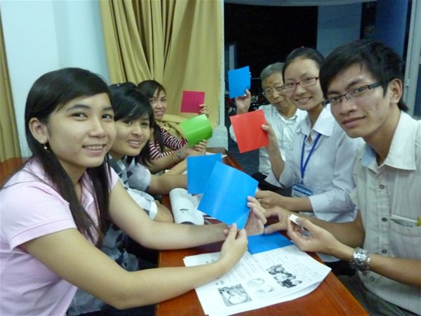 Mọi người đã cùng nhau thảo luận, cùng kể nhau nghe những câu chuyện thời ấu thơ của mình. Và cùng nhau thử tài với tiết mục gấp giấy.
