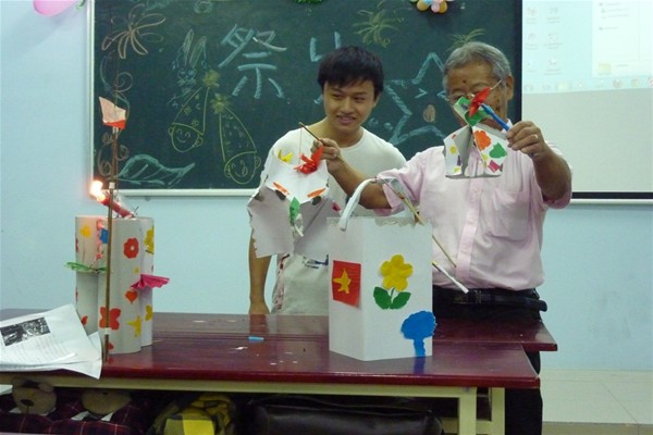 Háo hức tham gia trò chơi "Làm lồng đèn Trung Thu"