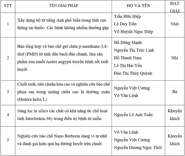 Khoa Dược - Đại học Lạc Hồng vinh dự đạt được 01 giải nhất, 01 giải Nhì, 01 giải Ba và 02 giải khuyến khích.