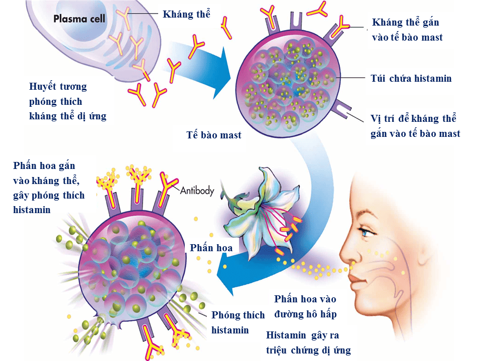 - Giai đoạn mẫn cảm: có sự mẫn cảm với dị nguyên đường hô hấp, hình thành kháng thể IgE đặc hiệu với dị nguyên.