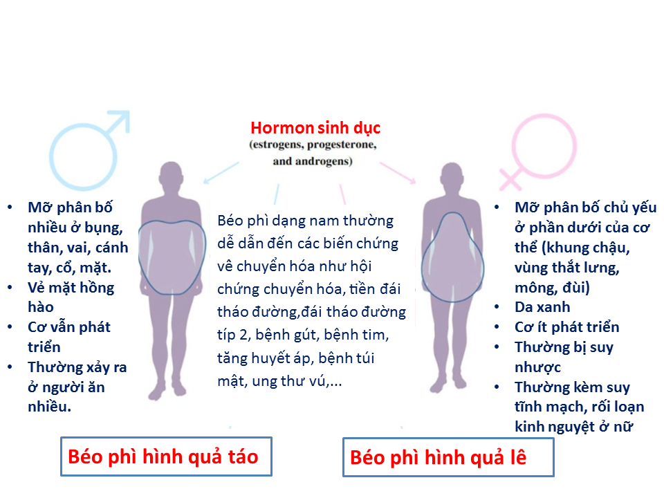 Nhiều nghiên cứu cho thấy có sự tương quan rất có ý nghĩa giữa béo phì dạng nam và các biến chứng chuyển hoá như đái tháo đường, tăng lipid máu, bệnh sinh xơ vữa động mạch, gút..