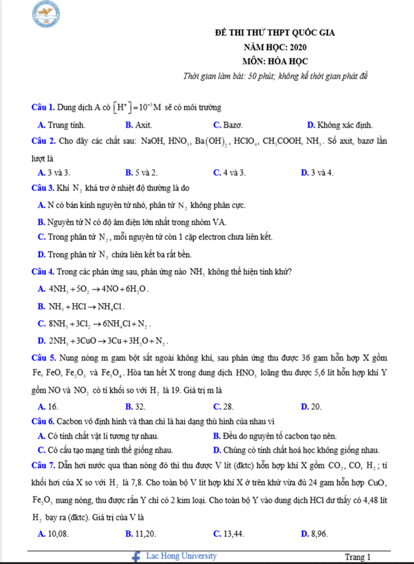 1. Đề thi thử THPT Quốc gia môn Hóa học