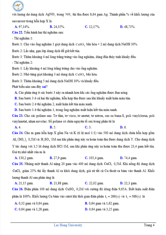 2. Đáp án & Hướng dẫn luyện đề thi thử THPT Quốc gia môn Hóa học, thí sinh vui lòng xem TẠI ĐÂY